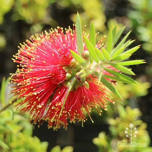 Cute-as-a-button groundcover bottlebrush with bright scarlet spring flowers that the birds will love, and stiff bristly foliage to keep the weeds down. Neat, compact, well-behaved and adaptable to most garden soils and climates. Just give it an annual light clip to keep it looking fine.
