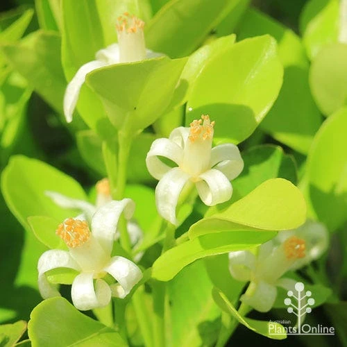 APPEARANCE : This medium-sized shrub has glossy leaves tight in habit and evergreen foliage. Ideal used as an evergreen hedging plant. Scented white flowers in spring and summer are followed by small oval or rounded orange fruit with a tart tangy taste;