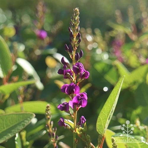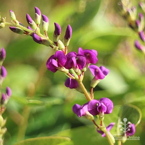 APPEARANCE:Â Native to Australia, this new Hardenbergia variety has larger leaves than the species form. Groundcover, or can be trained as a climber. Deep purple, pea-flowers during winter and spring.