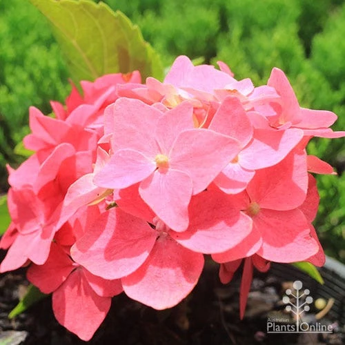 APPEARANCE : Dwarf deciduous shrub with big soft light green leaves and big, deep rose-pink flower clusters. Colour is consistent regardless of the soil pH, and deepens as the flowers open and mature.