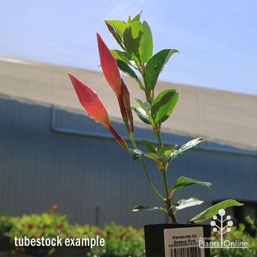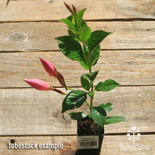 This brand NEW All Season Pink will give you cherry pink blooms right through the warmer months – it’s already in flower at tubestock size! We’re big fans of mandevilla and dipladenia at Australian Plants Online – they start flowering when young, they grow fast in the warmer months, they’re very generous with their flowers, and easy to look after. Truly a man(devilla) for all seasons.