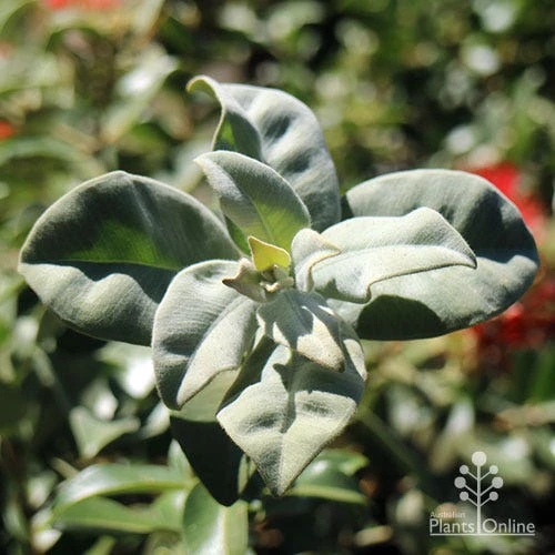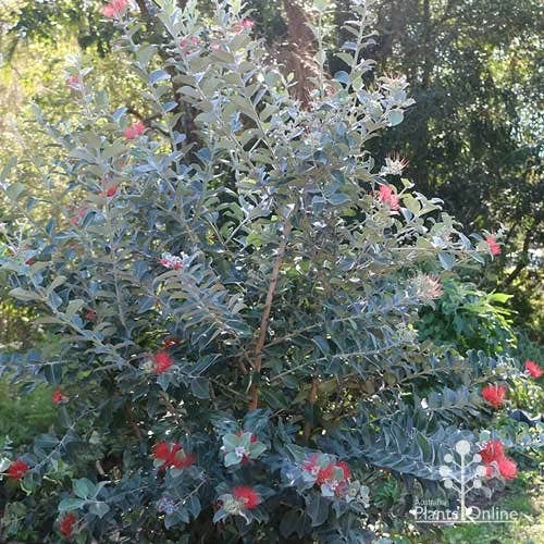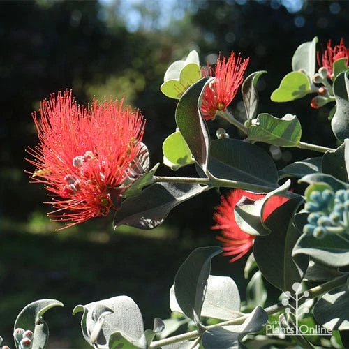 We are stoked to be able to offer you this gorgeous new Christmas bush in tubestock. It’s got all the pizzazz of the regular varieties – those big fluffy red flowers which pollinators adore – with the added attraction of blue foliage!